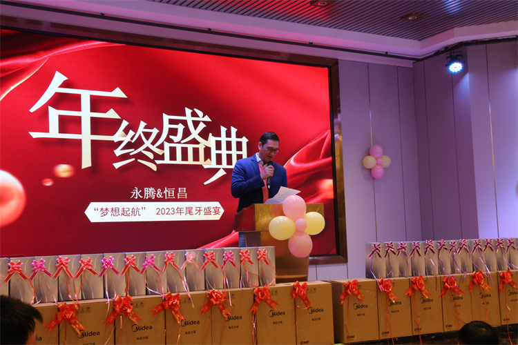 晚宴開始,永騰派出了有著多年年會主持經(jīng)驗的永騰副總經(jīng)理廖昌情先生擔(dān)任主持人。
